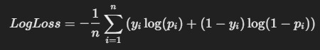 where yi is the actual class (0 or 1), and pi is the predicted probability for class 1.