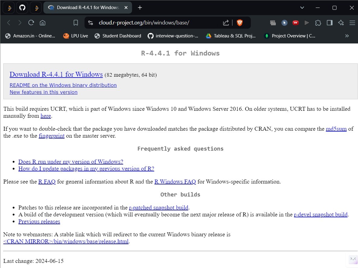 First, we have to download the R setup from https://cloud.r-project.org/bin/windows/base/.